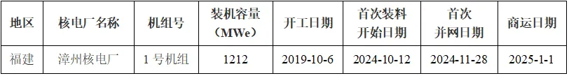 全国核电运行情况 (2025年1-12月) 发布者: 发布时间: