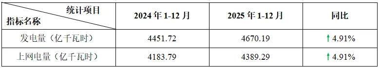 表2:2025年1-12月运行核电机组电力生产指标统计表