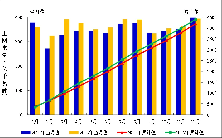 图3:2024年1月至2025年12月全国运行核电机组上网电量趋势